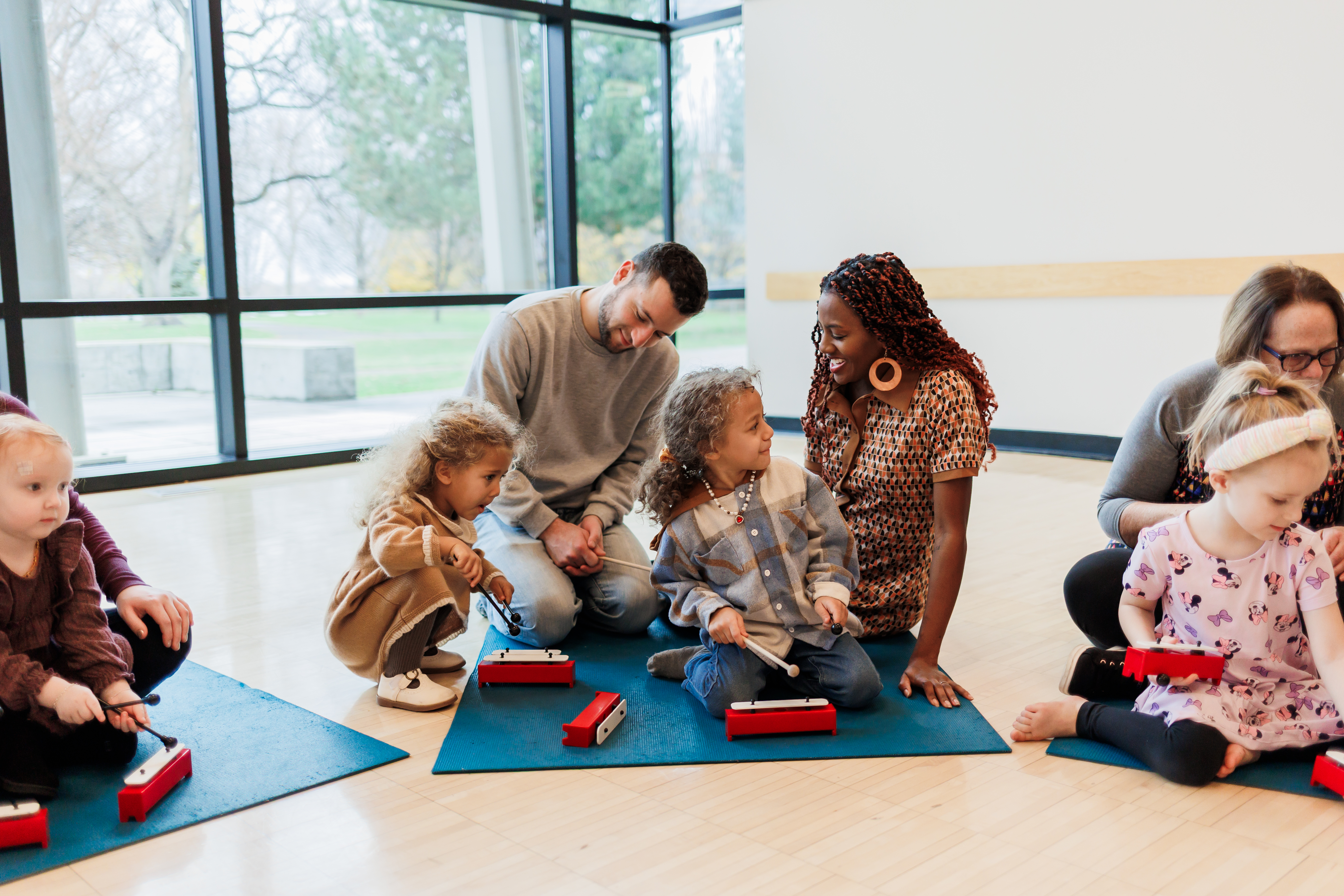 Children's responses depend on their most dominant learning style and temperament as well as their age and developmental level. Some might follow the teacher right away. Many will simply want to watch and absorb, particularly in the first few weeks of class. Some might crawl or toddle around; others are stimulated by the music and respond more actively, running, jumping, or dancing. All are perfectly natural responses to the new, musically rich environment. Throughout the semester, your teacher will help you tune in to how your child learns best so you can support their music development in class and at home. Feel free to ask if you have questions!